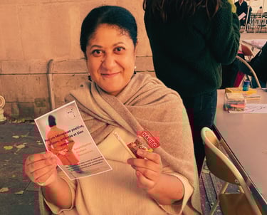 Meno'Posie était sur le Parvis de la Mairie du 20ème arrondissement dans le cadre de la journée évènement autour d'Octobre Rose. La rencontre avec les habitant.e.s et la sensibilisation et l'information autour de la ménopause ont pris des allures ludiques avec un Meno'Quizz au franc succès ! Certain.e.s n'hésitèrent pas à en redemander...on ne peut cependant pas exclure le boost de motivation apporté par les Meno'Prix à gagner si doux au palais.
