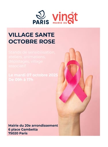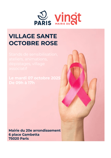 - le 7 octobre: au sein du Village santé organisé de 9h00 à 17h00 sur le parvis de la mairie du 20ème arrondissement de Paris, place Gambetta